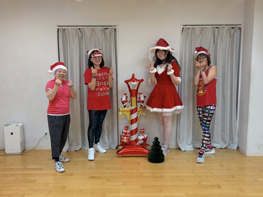 19時からのZUMBAはUDA先生。クリスマスモードでレッスン開始です!